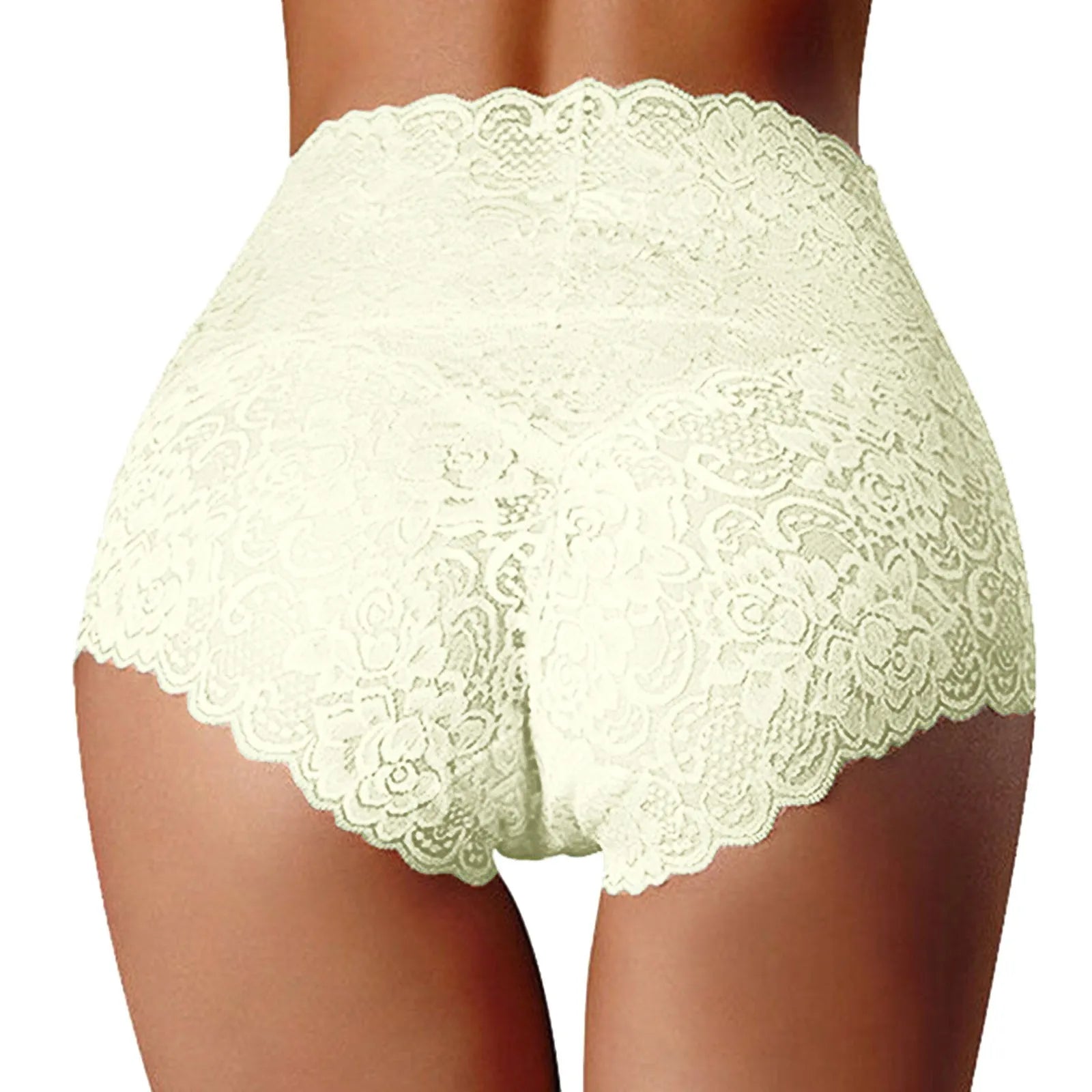 sous-vêtements sexy taille haute pour femme, culotte fine en dentelle creuse, entrejambe en pur coton, culotte grande taille pour le ventre
