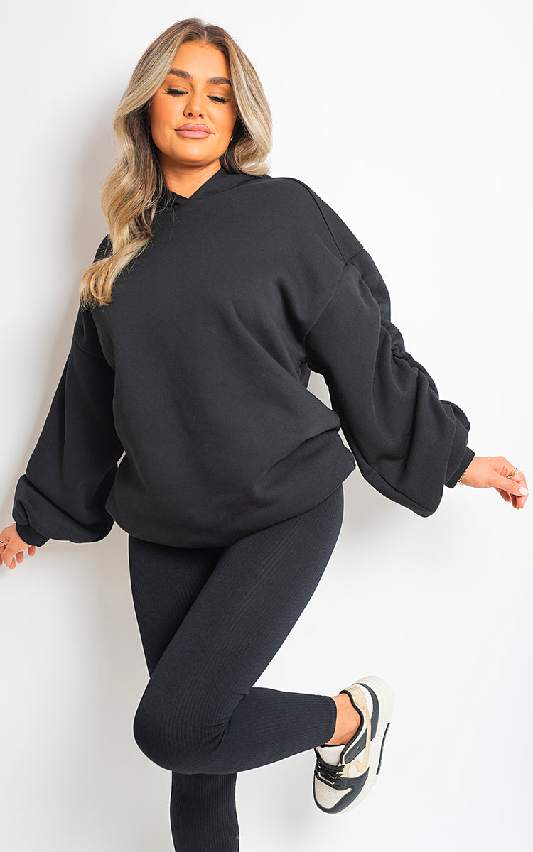 ? Designed for versatility, this hoodie is perfect for lounging at home or running errands in style. The oversized fit provides a relaxed and effortless look, while the ruched sleeves give it a chic and trendy edge.
