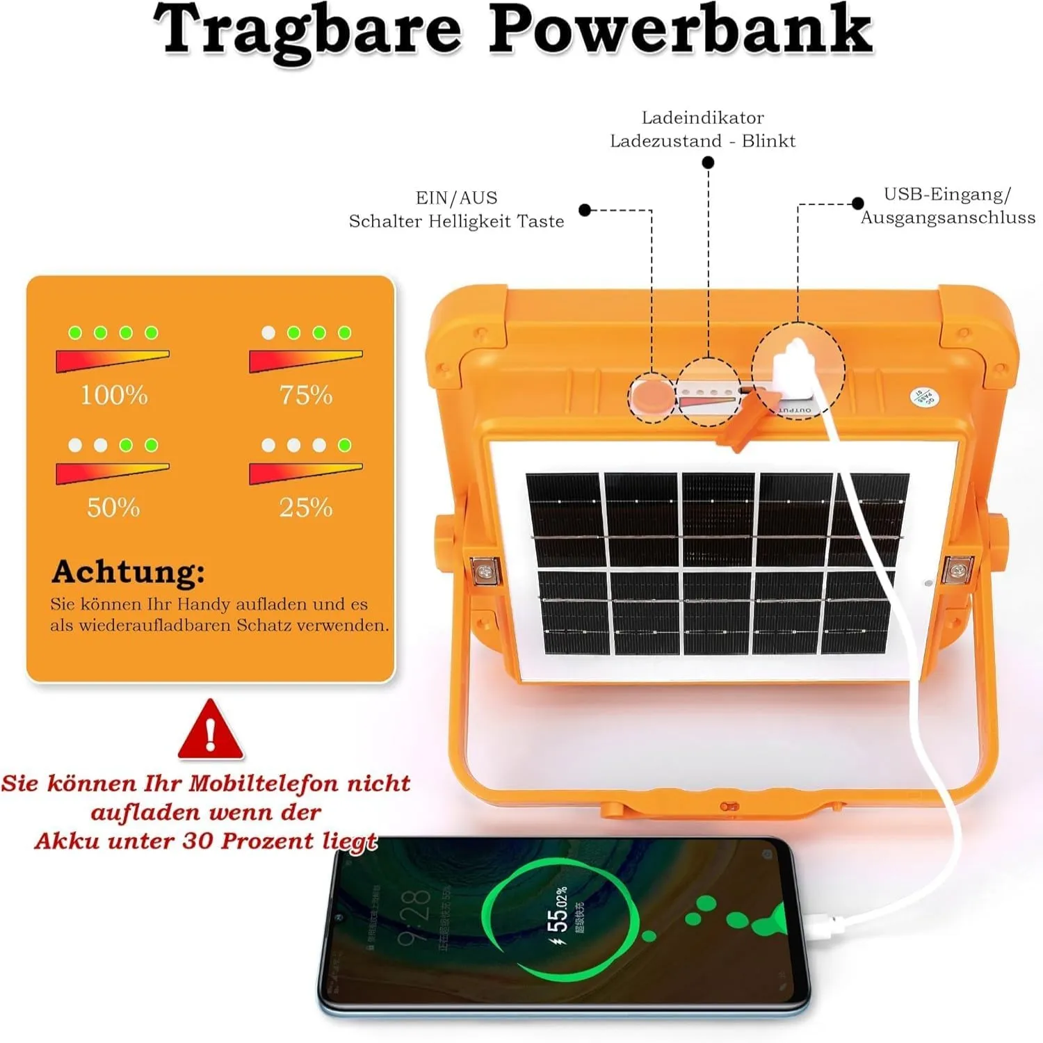 Avant de l'utiliser pour la première fois, veuillez charger le projecteur portable avec une prise, car la vitesse de charge de la sortie prend généralement une demi-heure pour être complètement chargée tandis que la charge solaire prend 8 heures.
