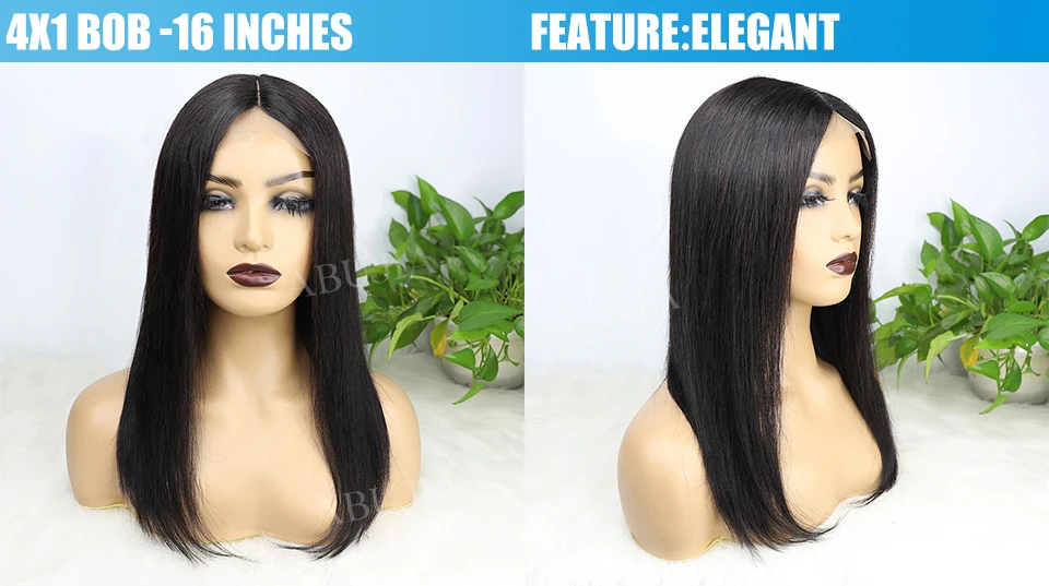 Couleur des cheveux : perruque noire naturelle et coupe 1B BOB
