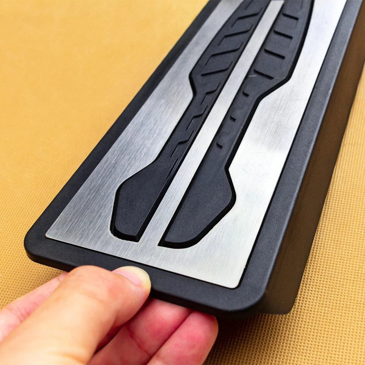 MatériauAcier inoxydable brossé avec caoutchouc TPE, protection de l'environnement et durableConception de surface antidérapanteEmpêche de glisser.Améliorez l'expérience de conduite globale et la sécuritéConception amélioréeAméliorez l'apparence de l'intérieur avec notre kit de pédalesInstallation facile, AUCUNE PERCE n'est requise1.Repose-pieds : nettoyez la pédale morte, collez le couvre-pieds avec le ruban adhésif double face
