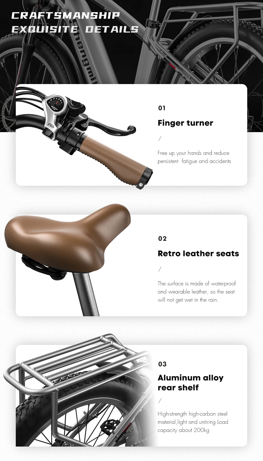 Rear Rack, tools, mudguards, charger; |