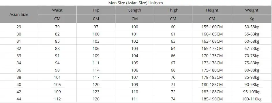 Size: 29 30 31 32 33 34 36 38 40 42 44