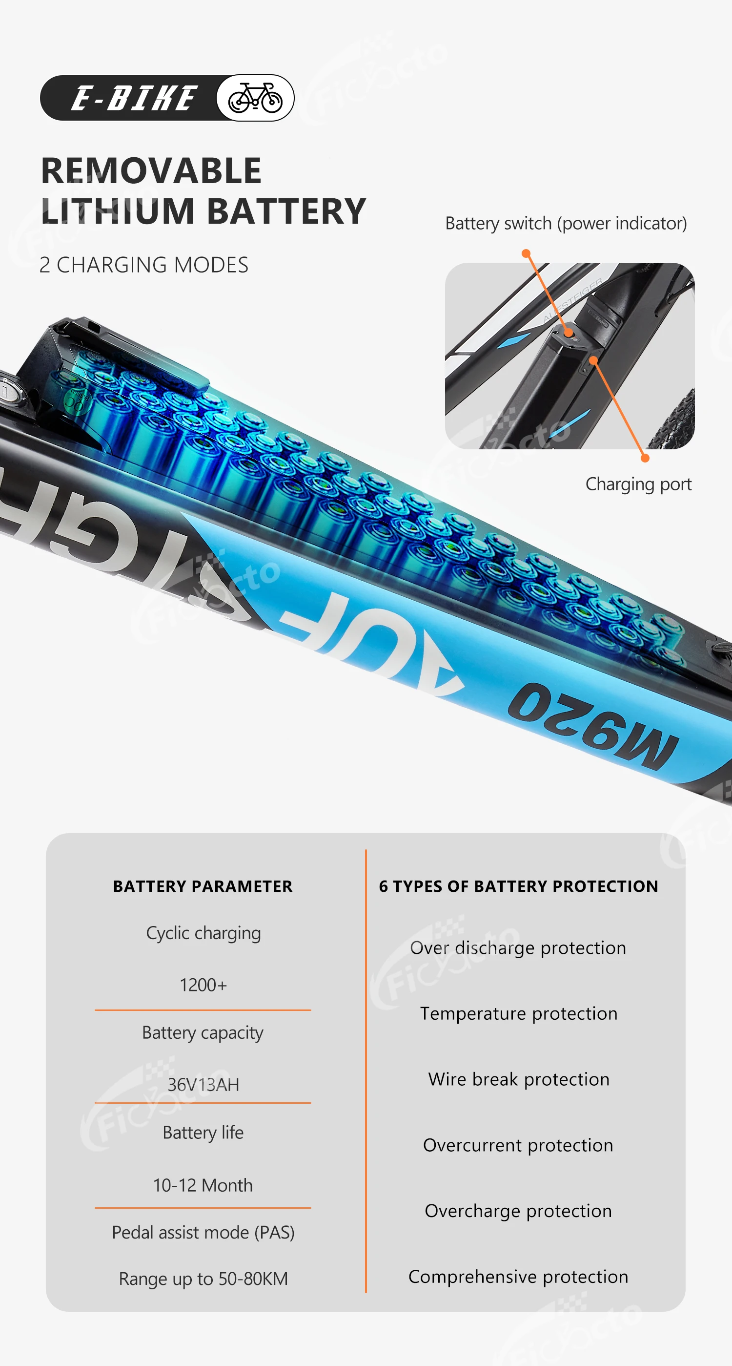 🔋 Long - lasting riding and multi - speed fun: It uses a 36V 13AH removable lithium battery, with a single charge range of up to 60km, which can easily cover scenes such as single - day mountain off - road, daily commuting and weekend outdoor riding; the battery is easy to disassemble and supports multi - scene charging, which is more flexible to use. The 9 - speed transmission system is suitable for various road conditions, meeting the needs of high - speed cruising and low - speed climbing, making riding more fun.