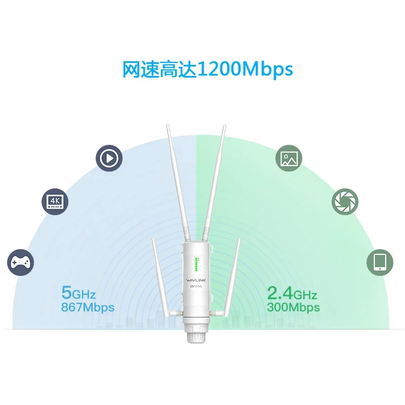 Wavlink AC1200 Point d'accès extérieur WiFi Booster double bande 2.4G/5GHz Extender IPX5 étanche haute puissance Wifi routeur/répéteur